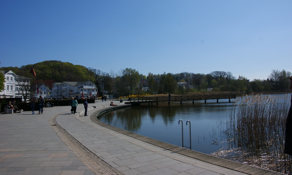 Genießen Sie einen Frühlings-Spaziergang durch das Ostseebad Binz während Ihres Urlaubes in der Pension ANKER. Wir starten auf dem Gelände der Pension ANKER, wo man auch im Frühling die Pracht der Blüten bewundern kann. Es geht von den Vordergebäuden Richtung Hinterausgang, wo man direkt auf den Rundweg des Schmachter See trifft. Der Rundweg ist unterteilt in einen Fussgängerbereich und Fahrradbereich und führt um einen kleinen Teil des Schmachter See. Wir laufen Richtung Ortszentrum und Steg des Schmachter See, wo die verlängerte Binzer Hauptstrasse endet. Geht man vom Schmachter See, weiter in Richtung Ortszentrum, dann beginnt die Binzer Fussgängerzone mit Ihren Geschäften, Gaststätten, Cafes und Bistros. Am Ende der Hauptstrasse gelangt man auf dem Binzer Seebrückenplatz mit Turmuhr und Seebrücke.
