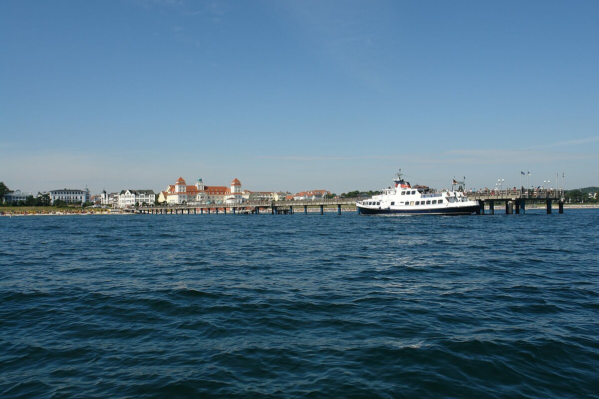 Von der 370m langen Seebrücke gibt es einen regen Schiffsverkehr zu den anderen Seebädern auf Rügen und zu den Kreidefelsen.